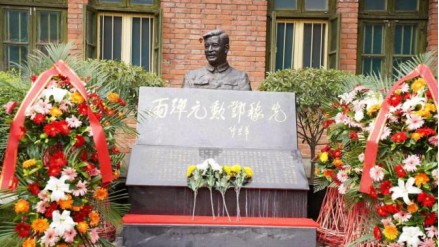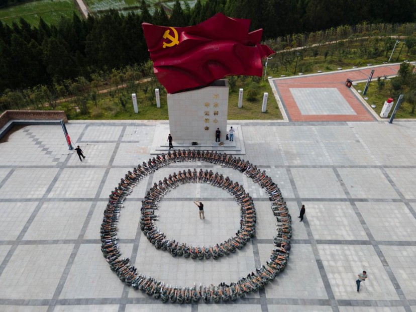 學員們在鄧稼先院士銅像前獻花、默哀,在黨旗下宣誓,錚錚誓言震耳欲聾,響徹山谷。